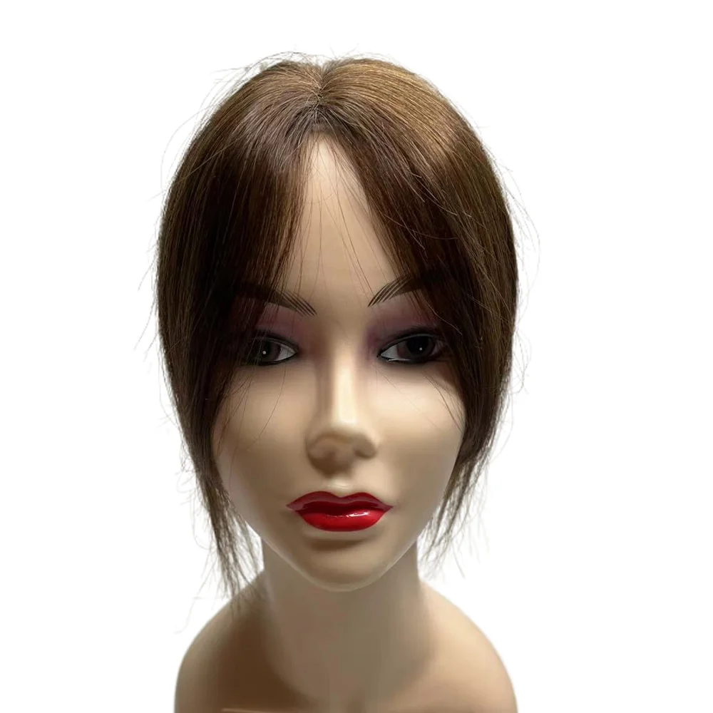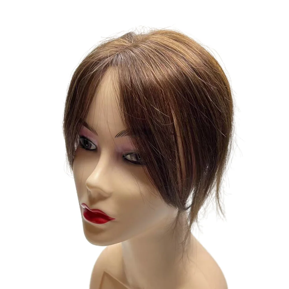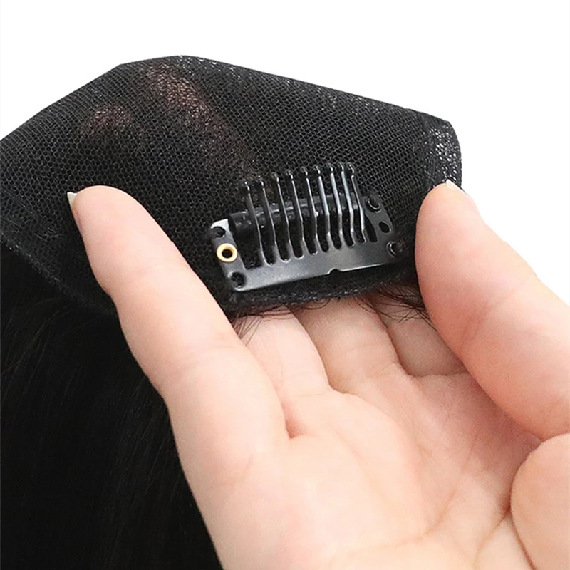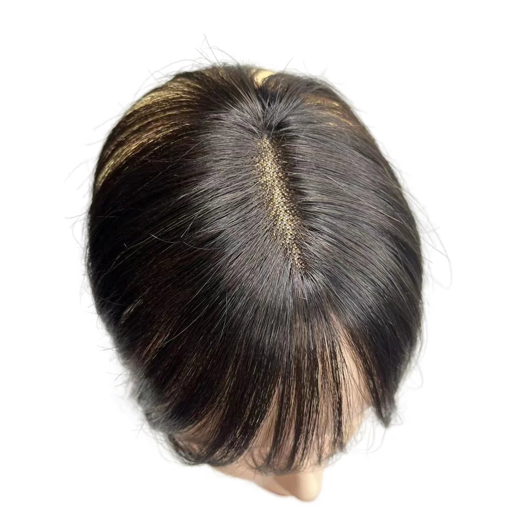 10'' Transparent Swiss Lace Natural Human Hair Toppers Clip In Brazilian Hairpieces Women Straight Cover Grey Hair Loss Handmade