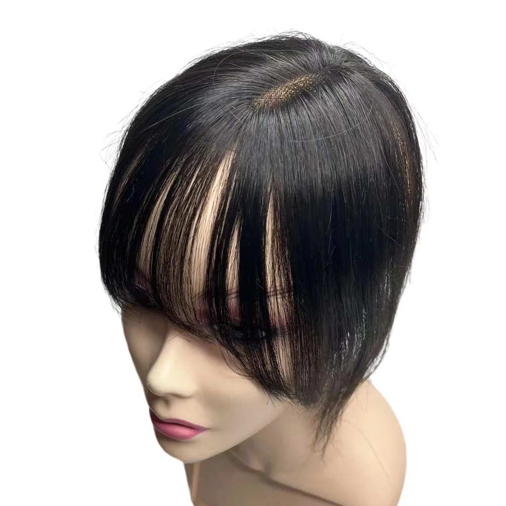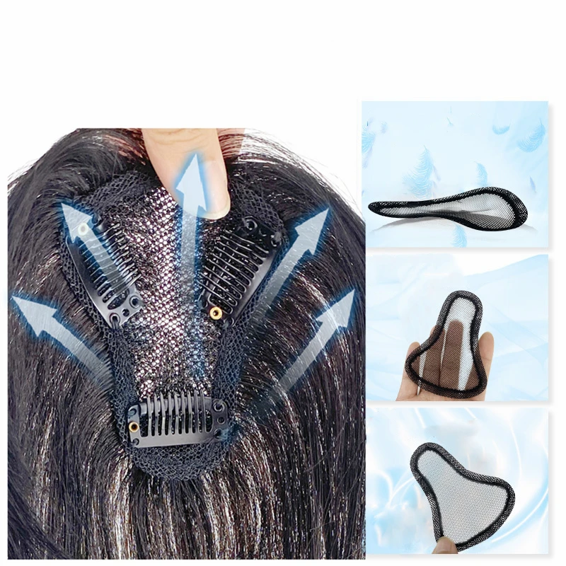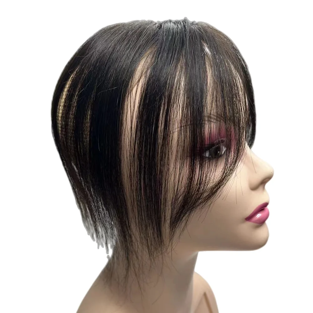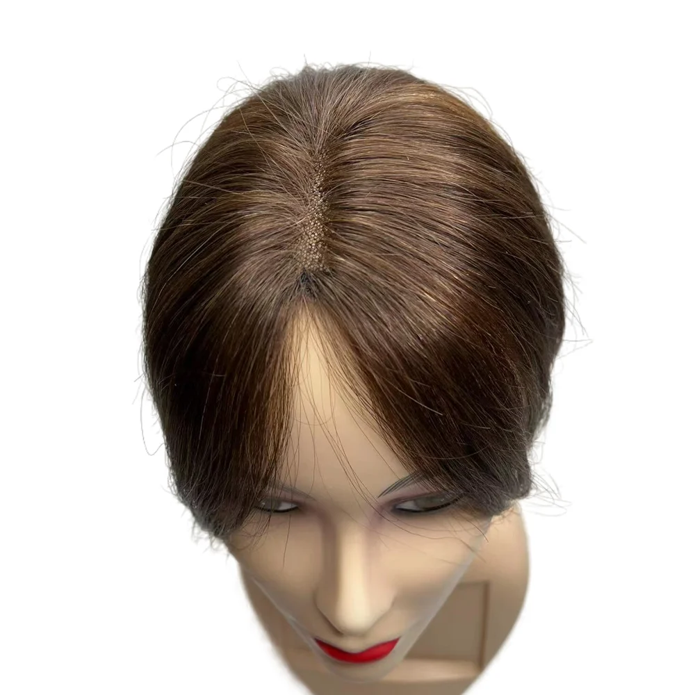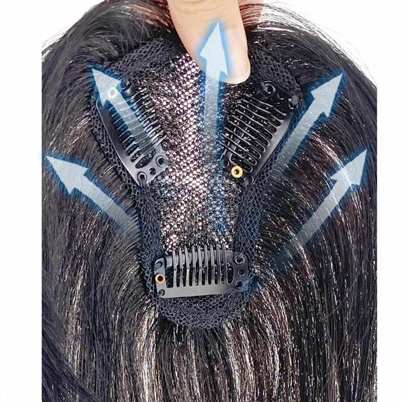 10'' Transparent Swiss Lace Natural Human Hair Toppers Clip In Brazilian Hairpieces Women Straight Cover Grey Hair Loss Handmade