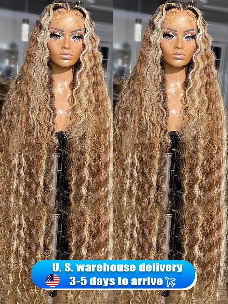 250 Density 30 40 Inch Highlight Ombre Deep Wave HD Lace Front Wig Colored Curly Human Hair Wig 13x6 Lace Frontal Wigs For Women