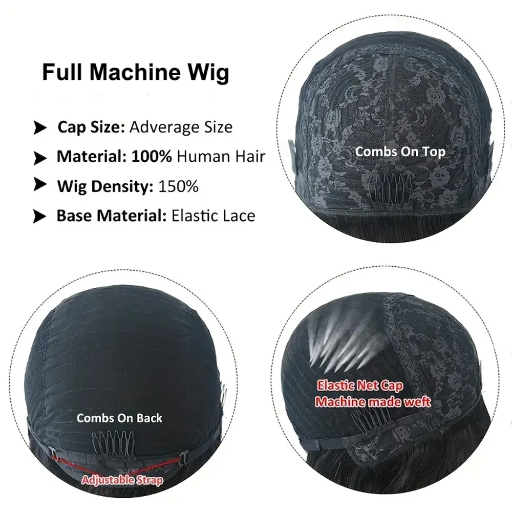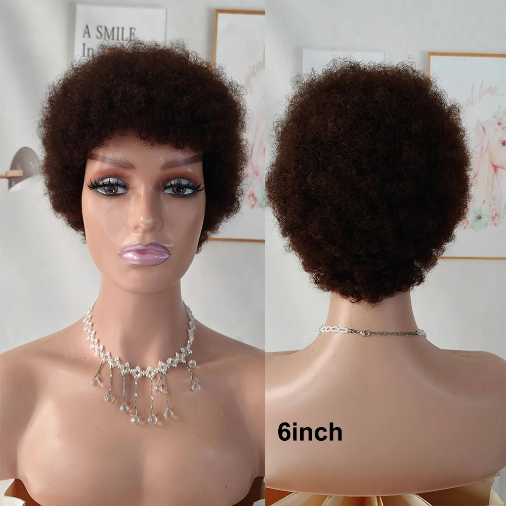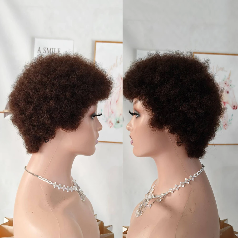 #4 Brown Afro Curly Bob Human Hair Wigs With Bangs For Women Remy Brazilian Kinky Curly Wigs No Lace Full Machine Made Wig