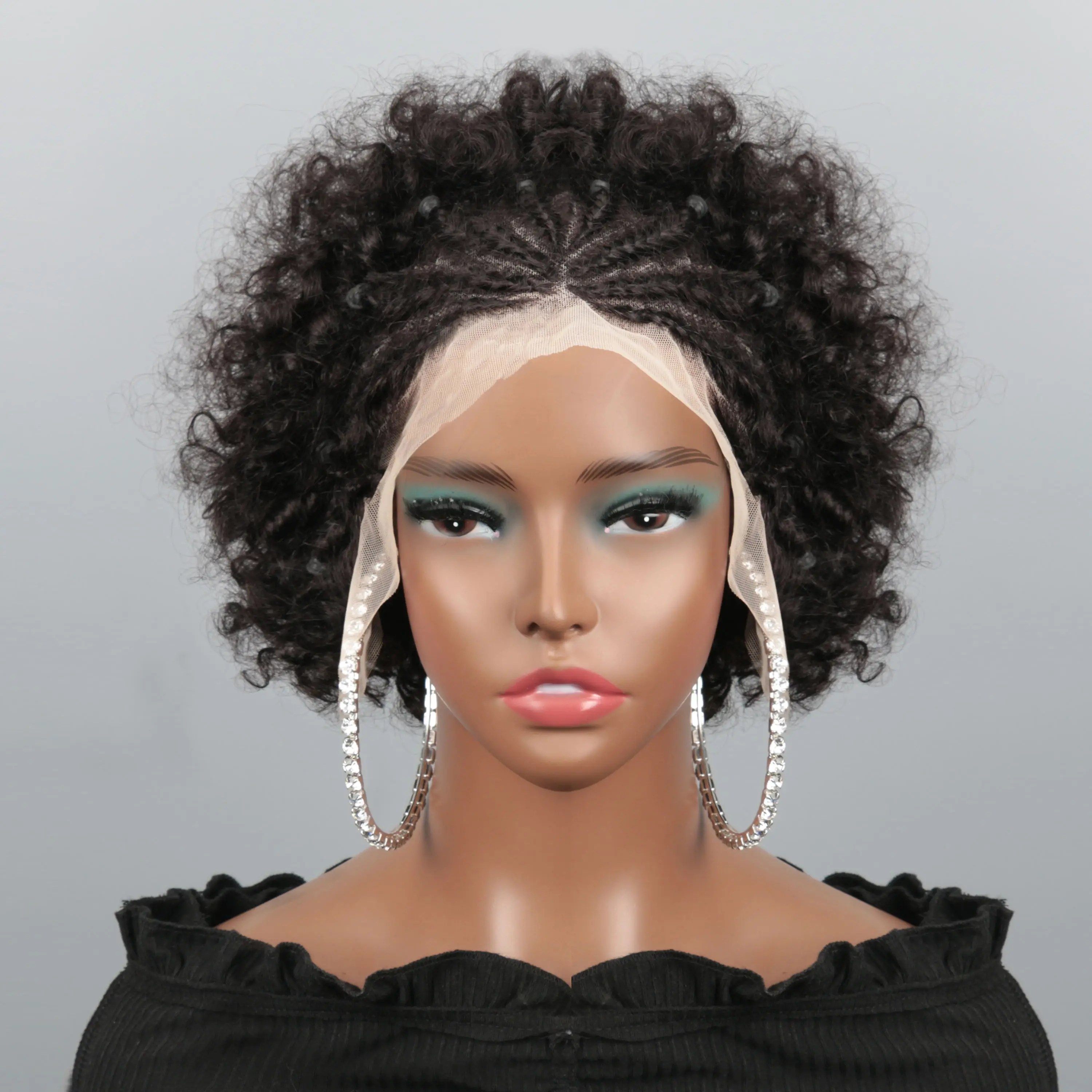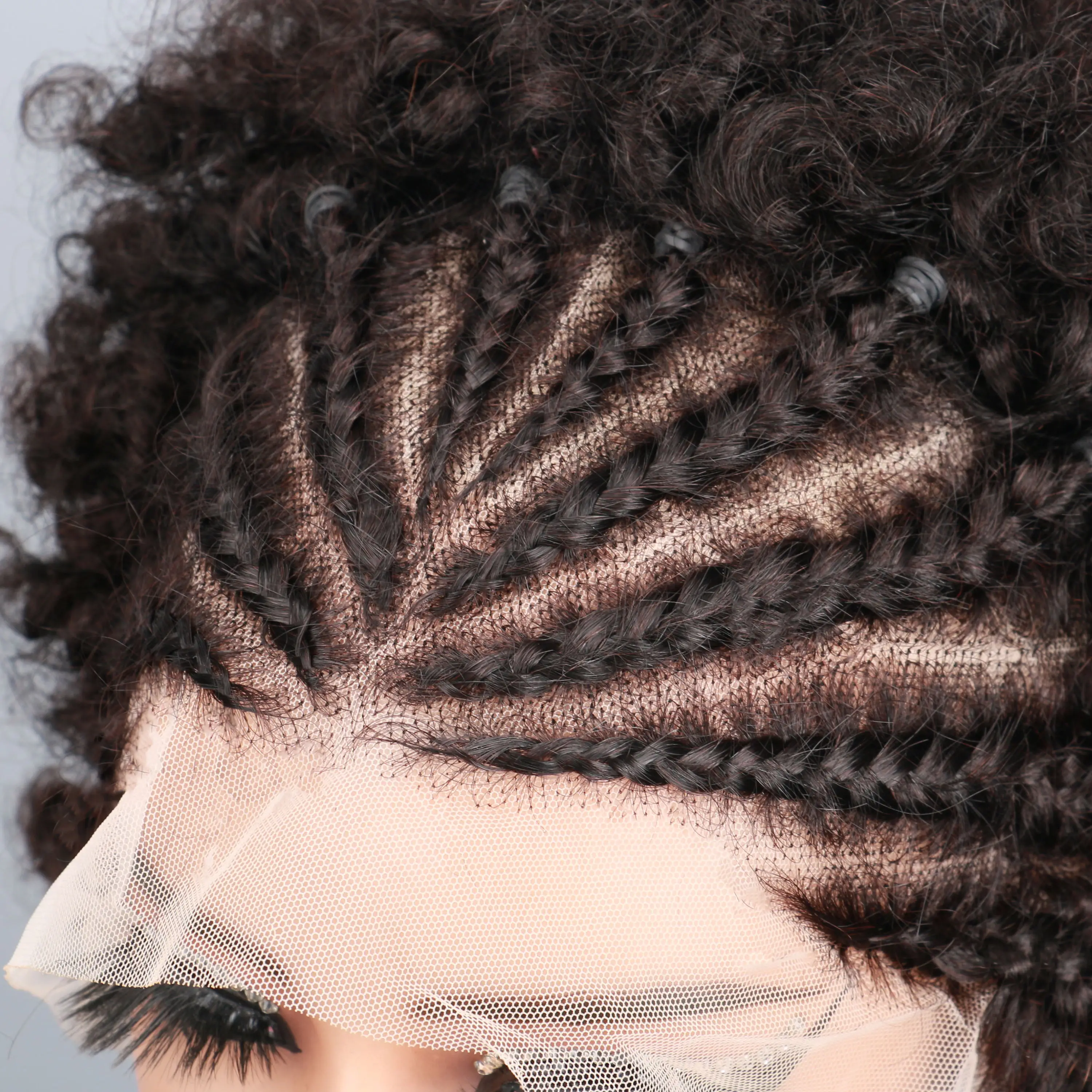Braided Wigs for Black Women Human Hair Afro Puff Lace Frontal Hair Wigs Afro KinkyCurly Human Hair 13x4 Lace Front Pre Braided