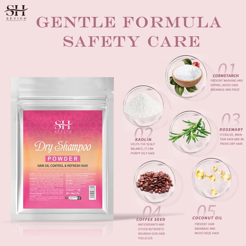 A unique blend of natural ingredients that absorbs excess hair oil and sweat; deliver a refreshing scent for hair; promote healthy hair development.