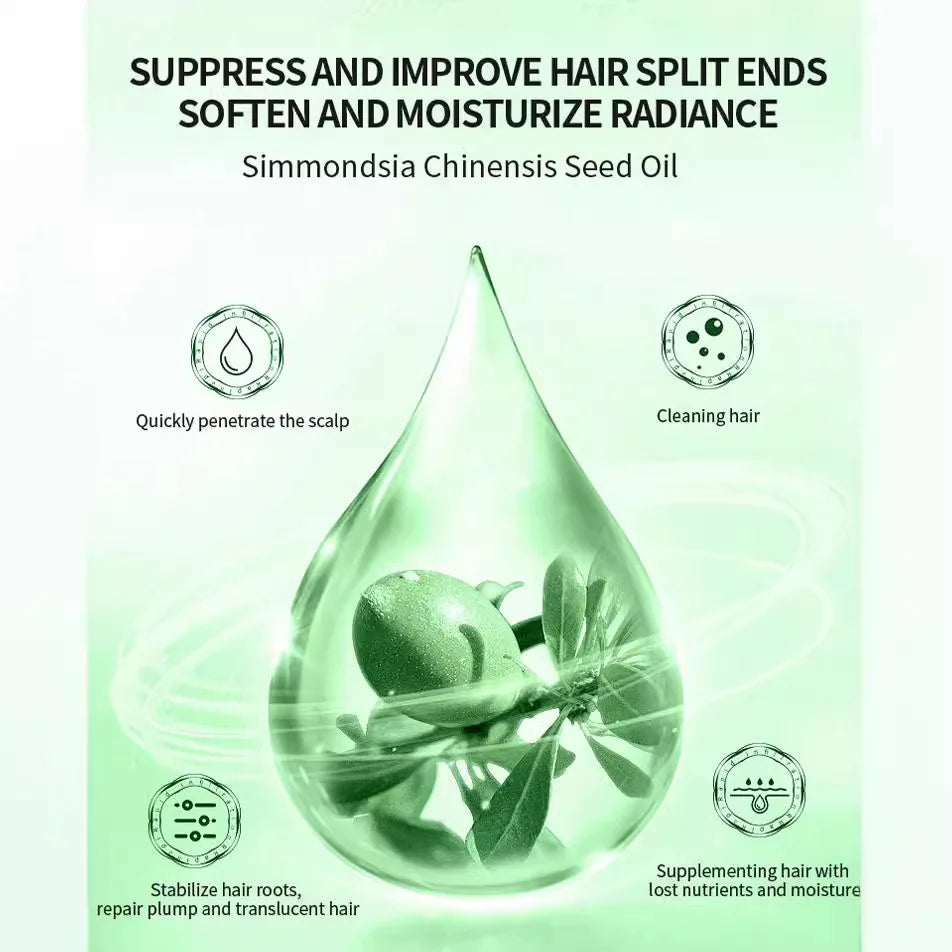 Functional features: Vitamin with Moroccan Oil and Camellia seed oil, Vitamin A, C, E, and B5, Contains natural ingredients, Penerates the core and ends of the hair layer by layer, repairs hair dryness, split ends, rough hair and other hair problems caused by hair dyeing, sun exposure and hair blowing, and forms a moisturizing and silk protective layer on the surface, making The hair light and light Dynamic, welcome and fluffy, showing silk and sparking dynamic