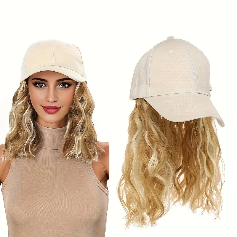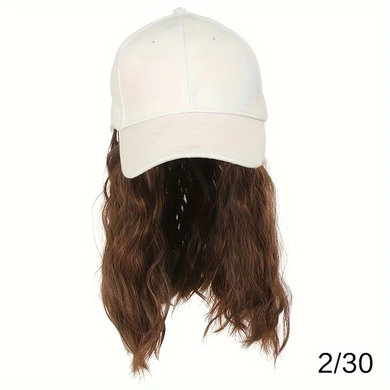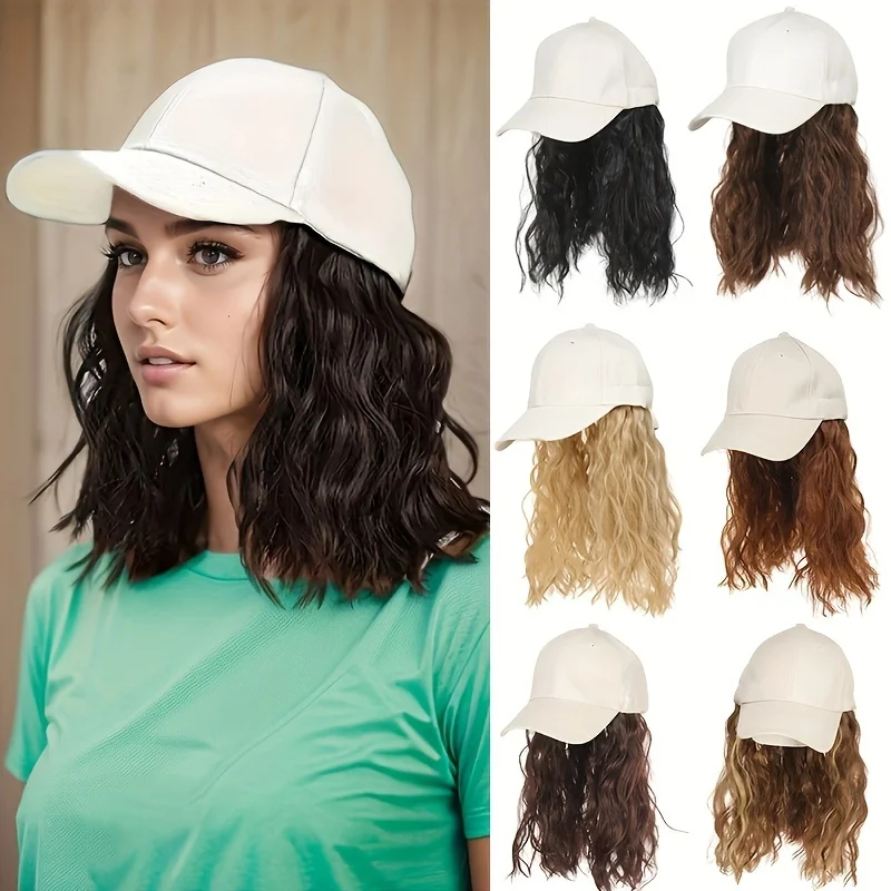 Hat Wig for Women Short Wave Baseball Cap Wig with Curly Synthetic Hair Extensions Adjustable Brown Black Baseball Hat Wig