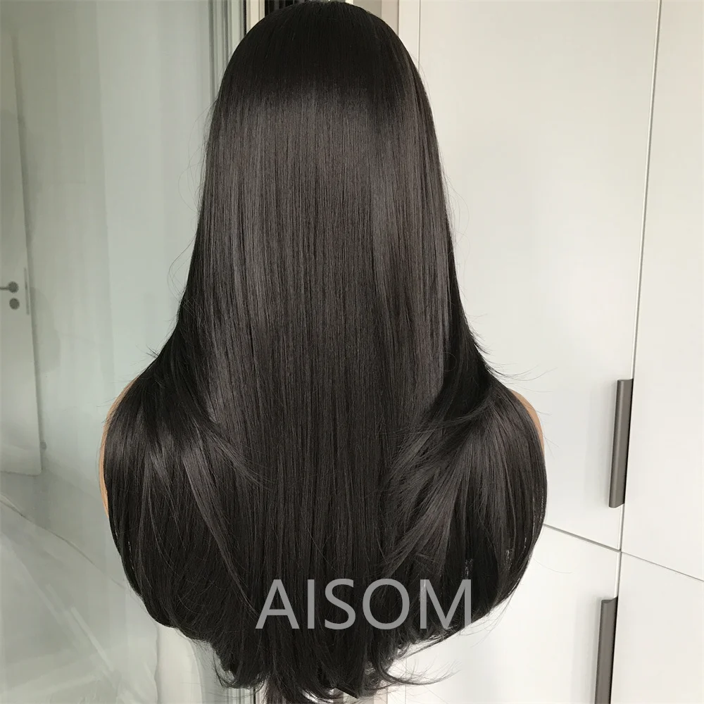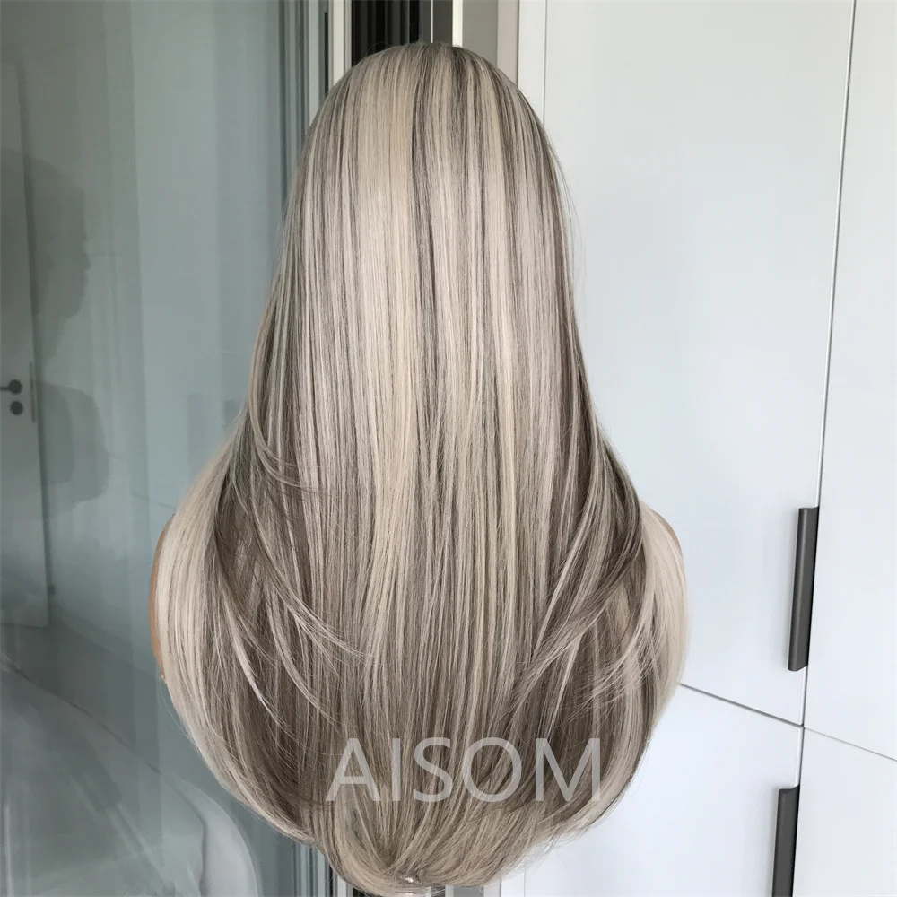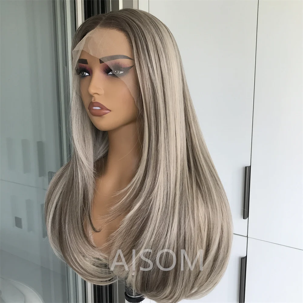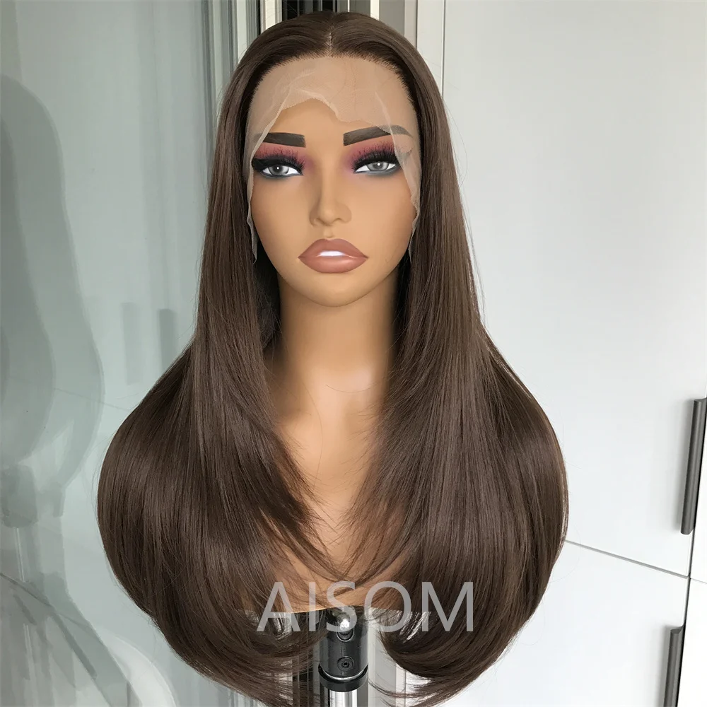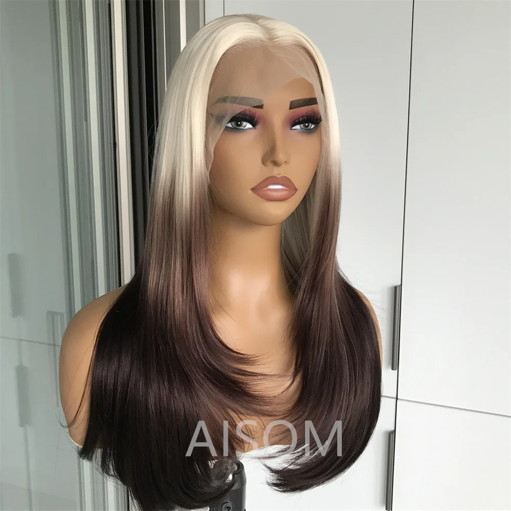 Highlight Blonde Layered Wig Synthetic Lace Front Wig for Women Straight Chocolate Brown Colored Pre Plucked Lace Wig Black