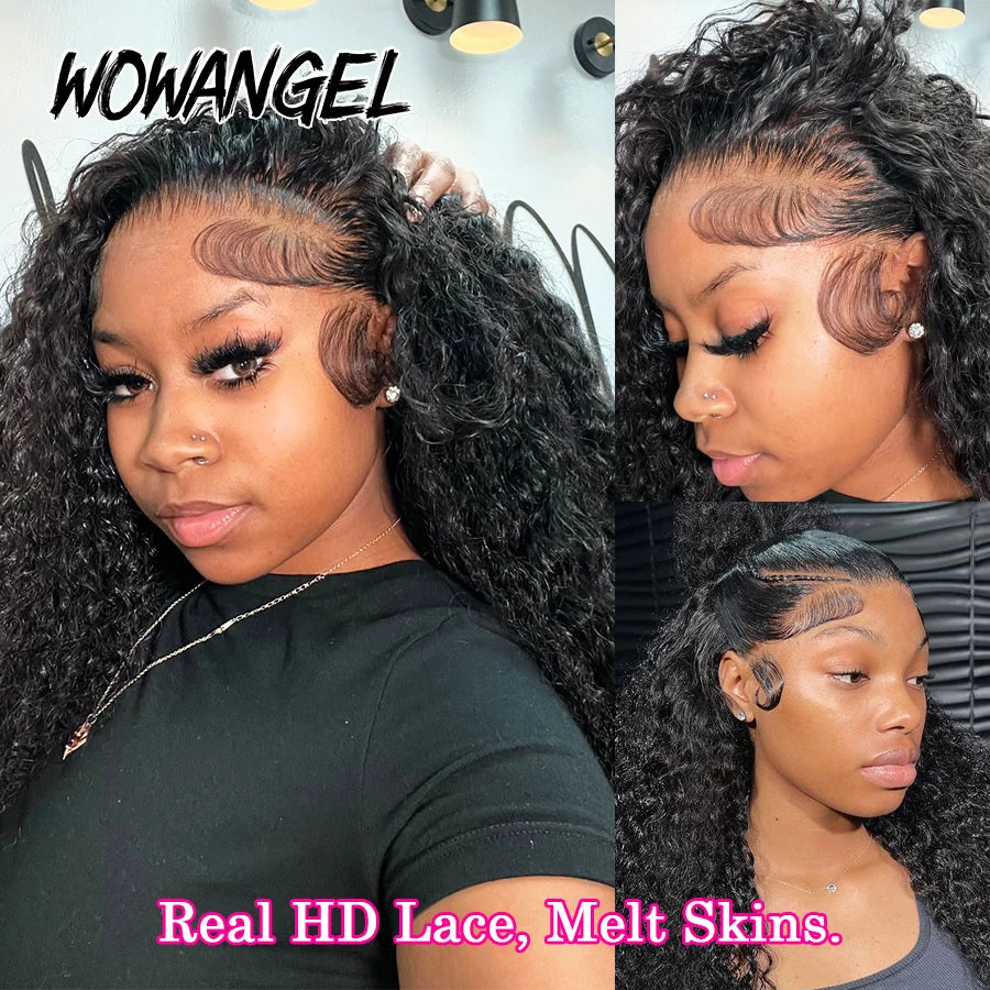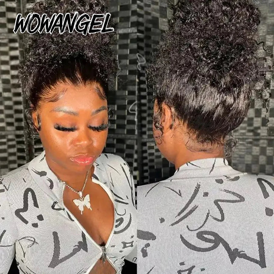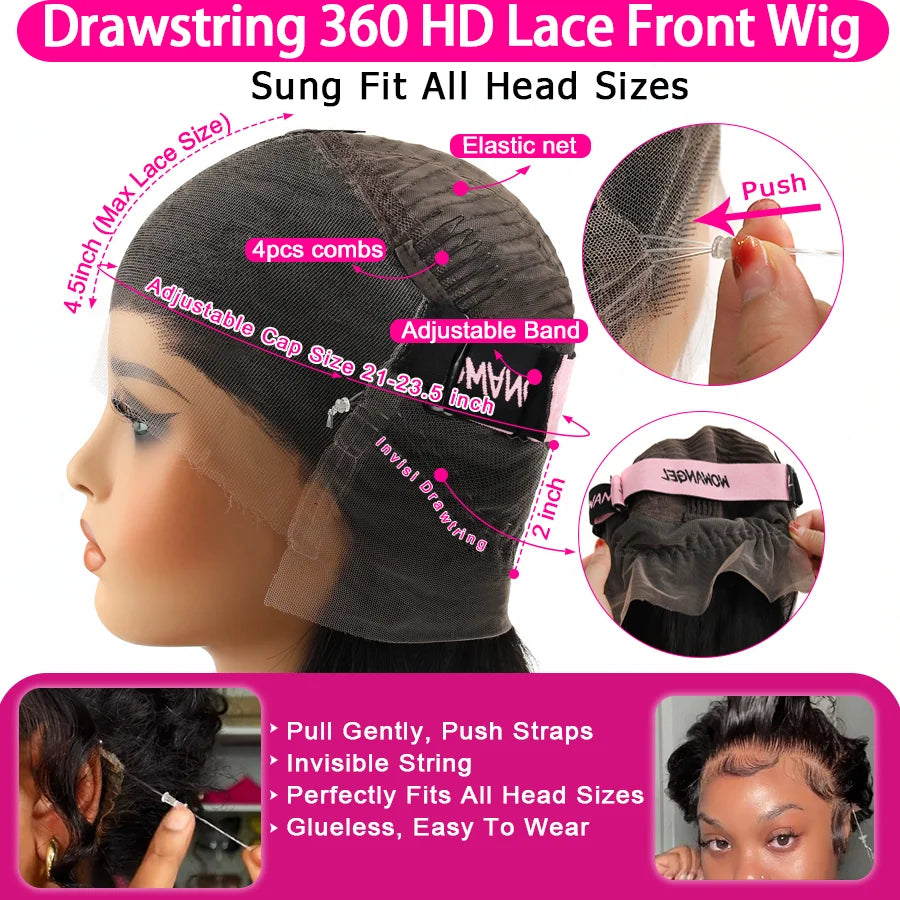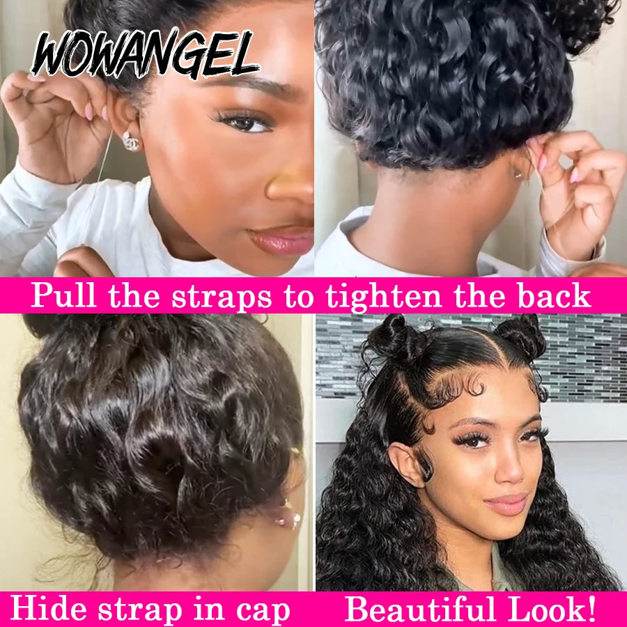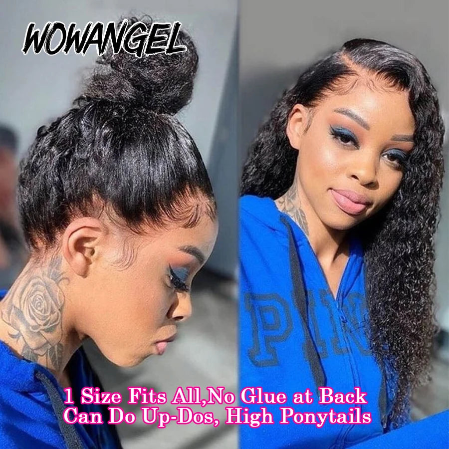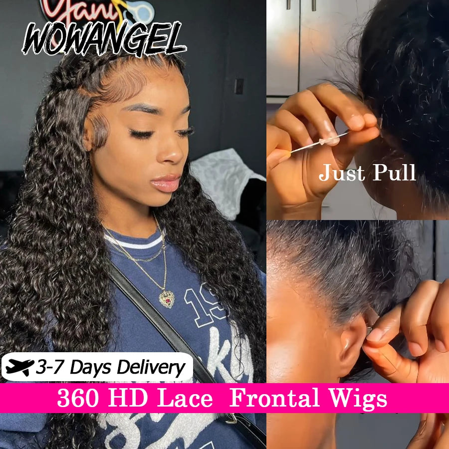 Invisible Drawstring Cap 360 HD Lace Frontal Wigs Water Wave Full Lace Wigs Glueless Human Hair Wigs High Ponytail Curly Wigs