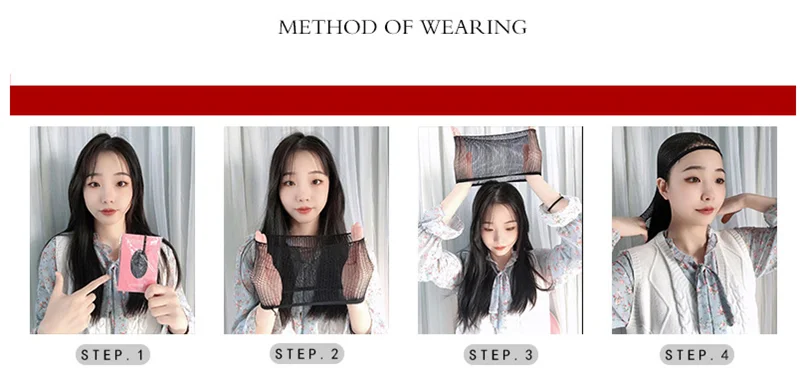 Korea Style Hair Extensions Synthetic Daily Use Young Female Bobo Wigs Breathable Head Cover Shoulder Long Straight Wig Hat for Women