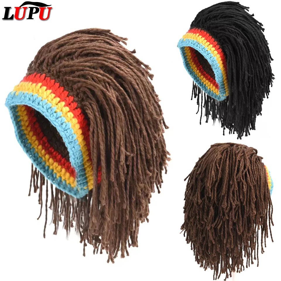 LUPU Synthetic Rasta Wig Hair Cap Beanie Hat Jamaica Rasta Handmade Cap Reggae Dreadlocks African Roots Wig Funny Bob Marley