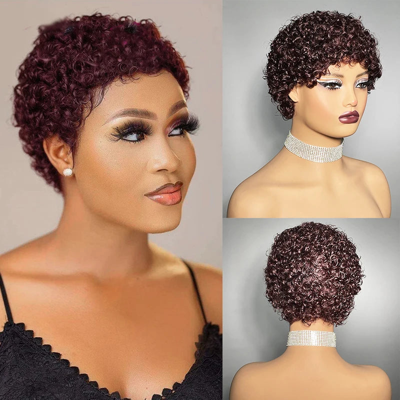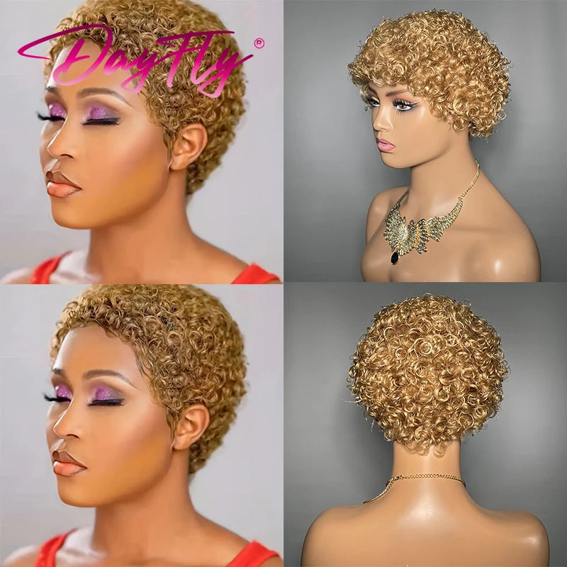 Short Afro Kinky Curly Hair Wigs For Black Women Human Hair African Fluffy Wig With Bangs Brazilian Pixie Cut Hair Wig Blonde 27