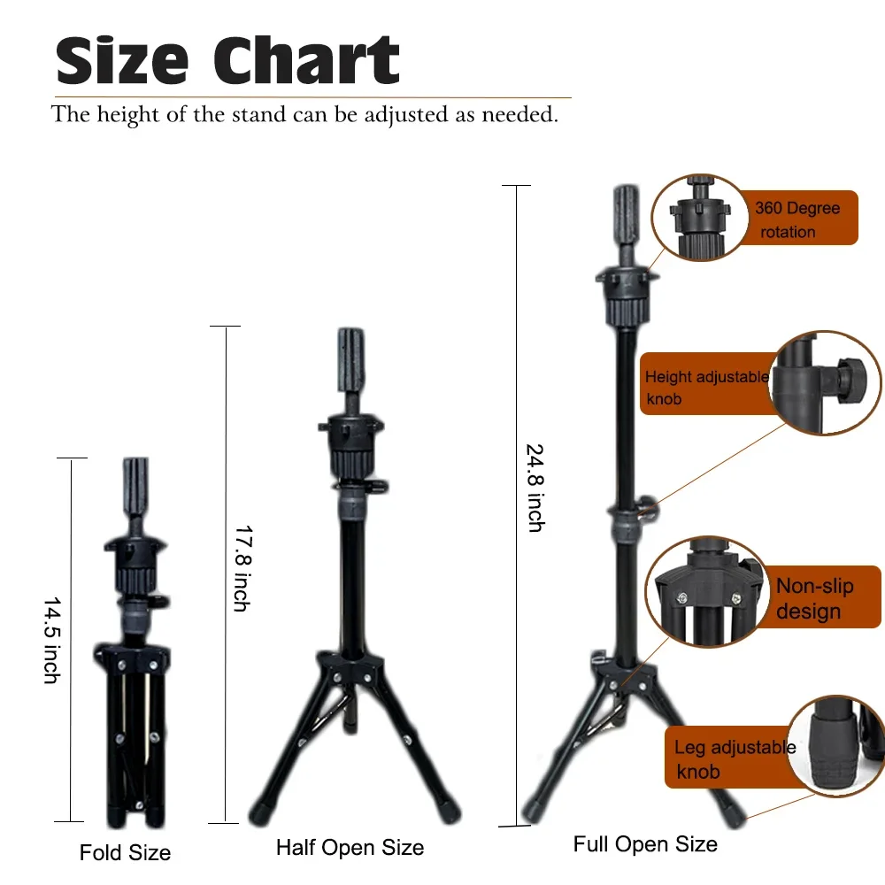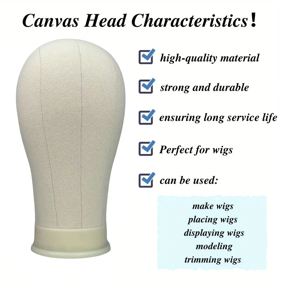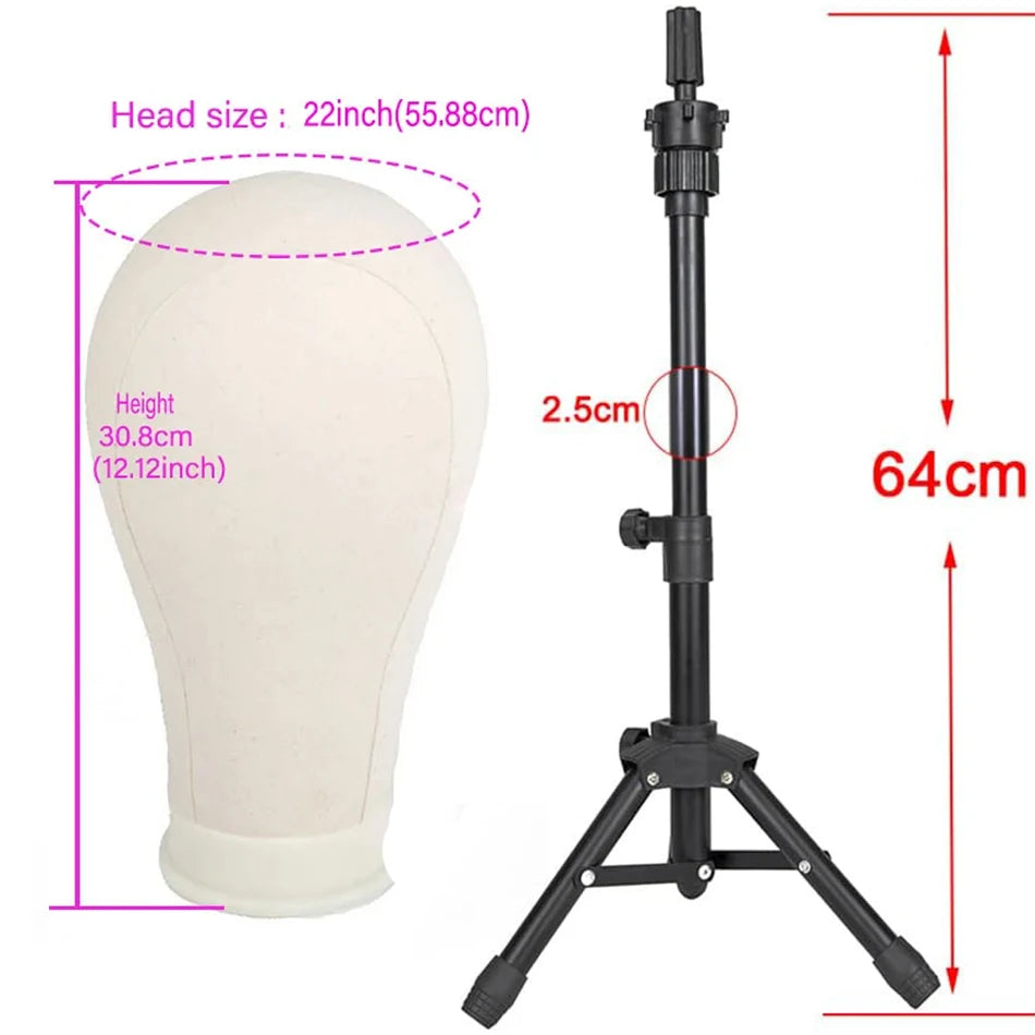 Soft Canvas Wig Head With Tripod Stand 22' Training Mannequin Canvas Head for Hairstyle Display DlY Making Wig Stand With Head