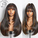 🔥 🔥 PUT ON & GO: Beginner-friendly. This 22 inch glueless natural black straight layered wig with bangs requires no expertise for installation, easy to manage.