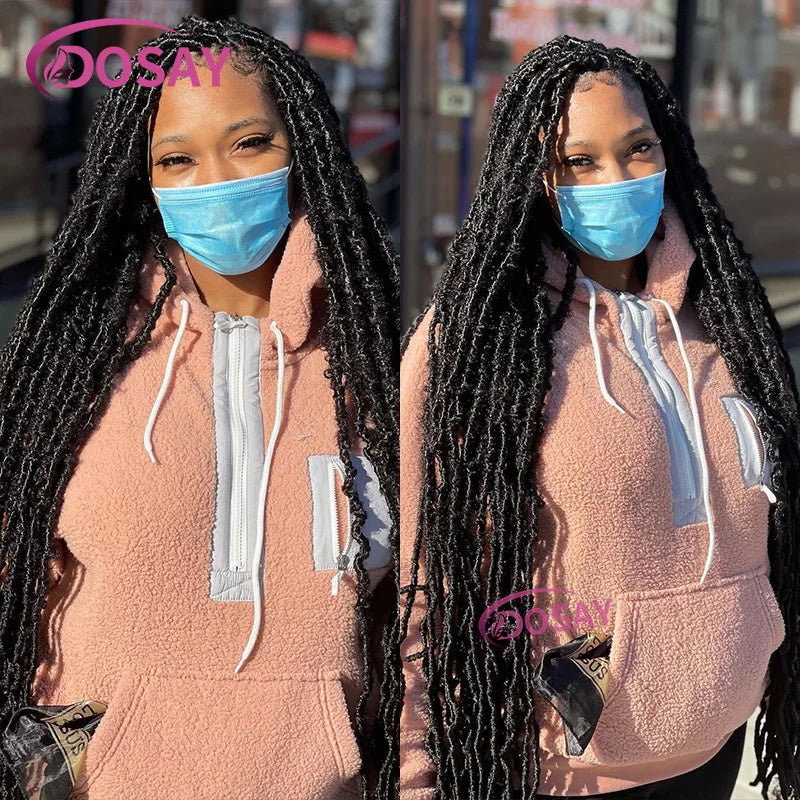 Lace Braided Wigs Faux Locs Synthetic Lace Front Wig for Women Butterfly Locs Braids Wig 40 Inch Long Dreadlocks Free Part Lace