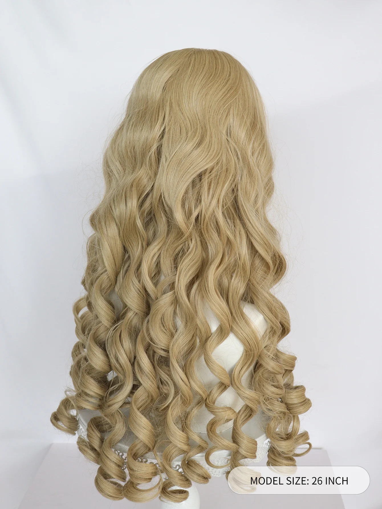 Synthetic 26inch Princess Curly Wavy Long Brown Sleeping Beauty Aurora Cosplay Wig for Halloween Christmas School Thanksgiving