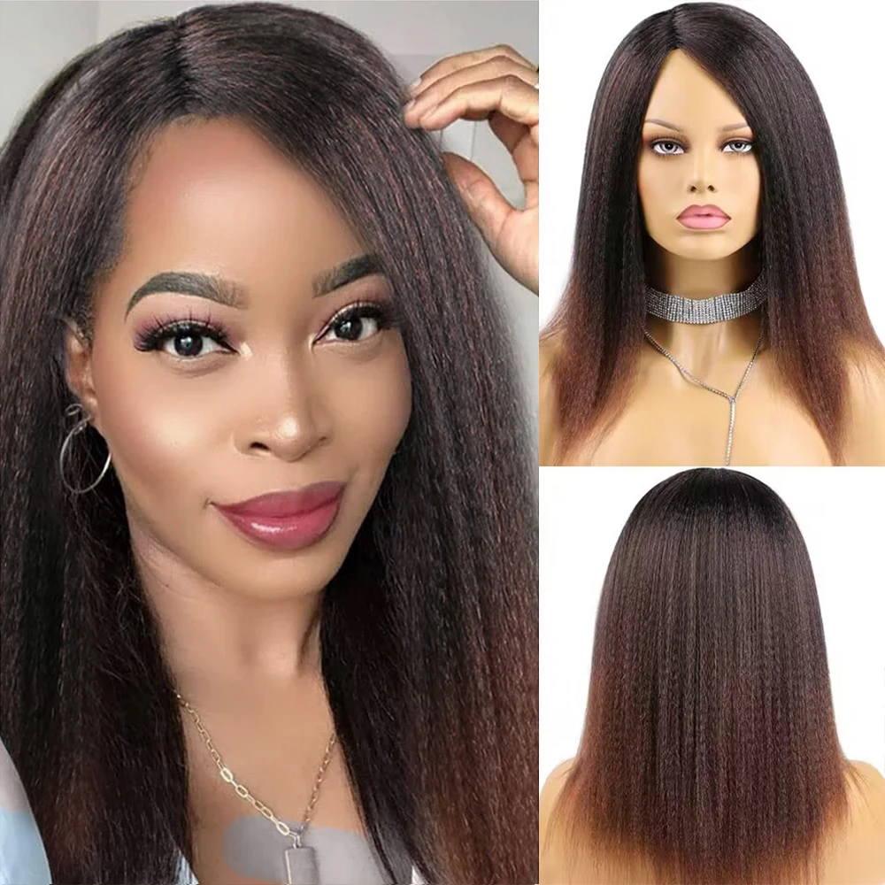 Wig Texture: Yaki Kinky Straight Wigs Synthetic Kinky Afro Wigs