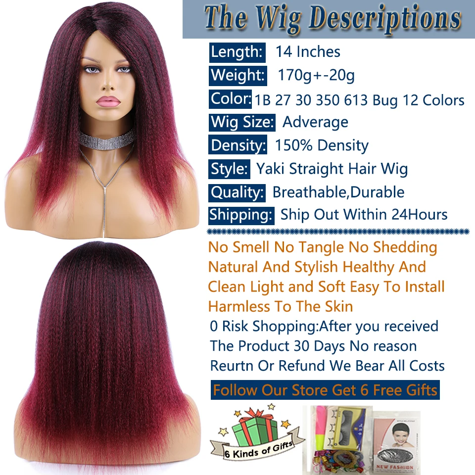 Yaki Kinky Straight Wig for Black Women 14 Inch Hair Natural Hairline Dreadlock Wig Kinky Curly Synthetic Hair Wigs Soft Fluffy