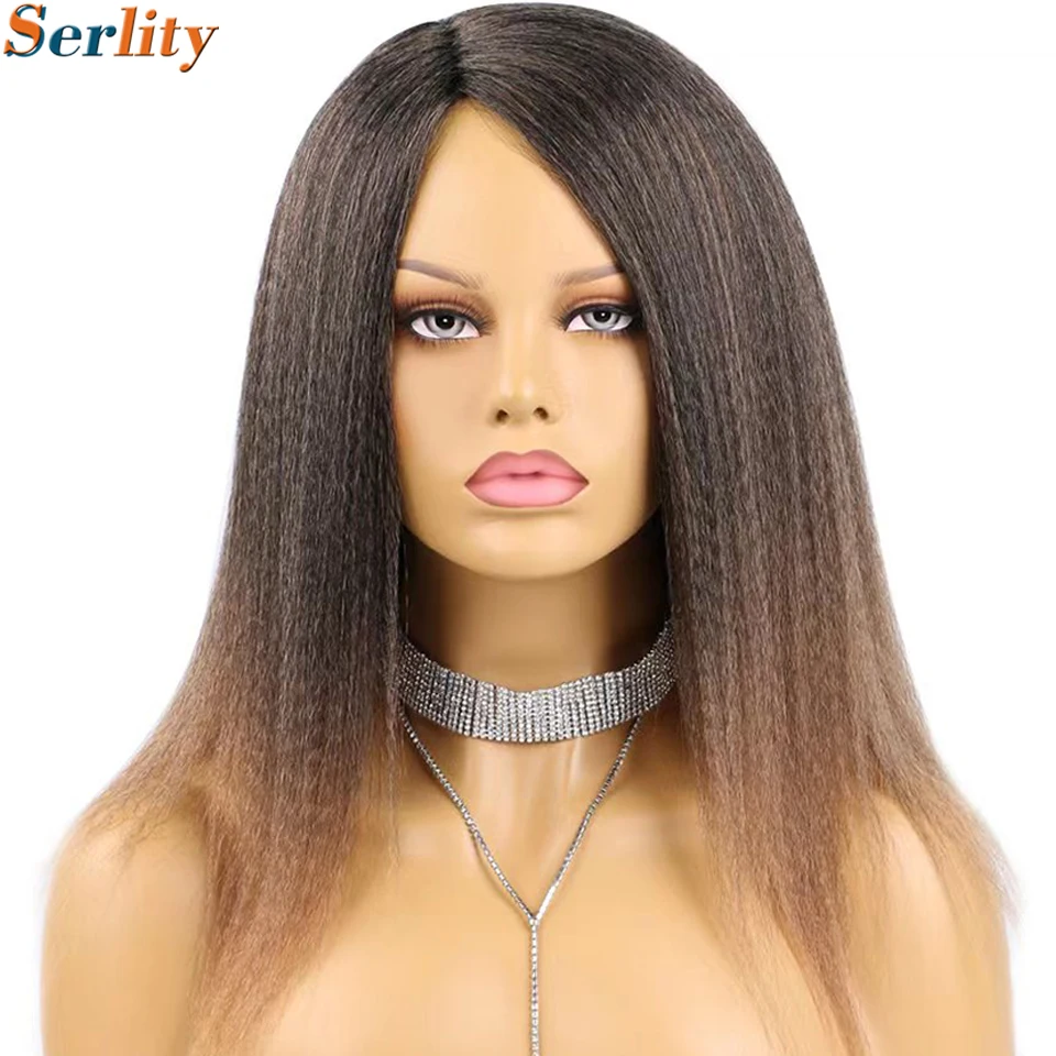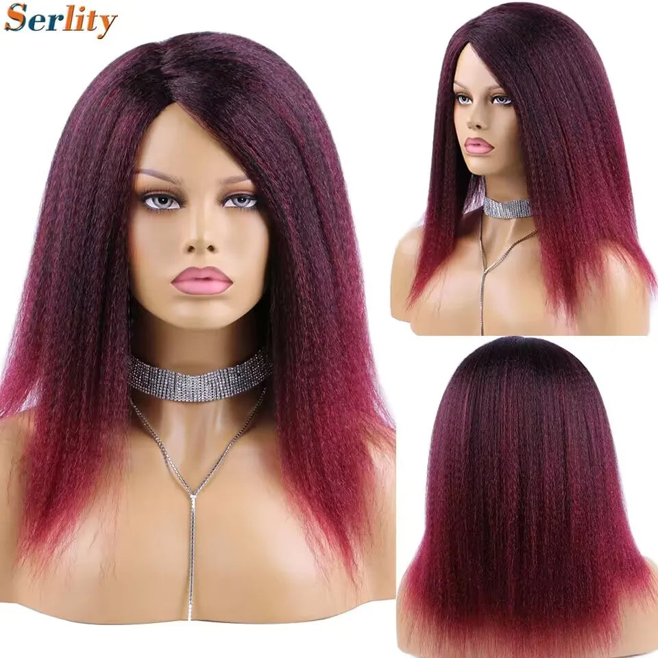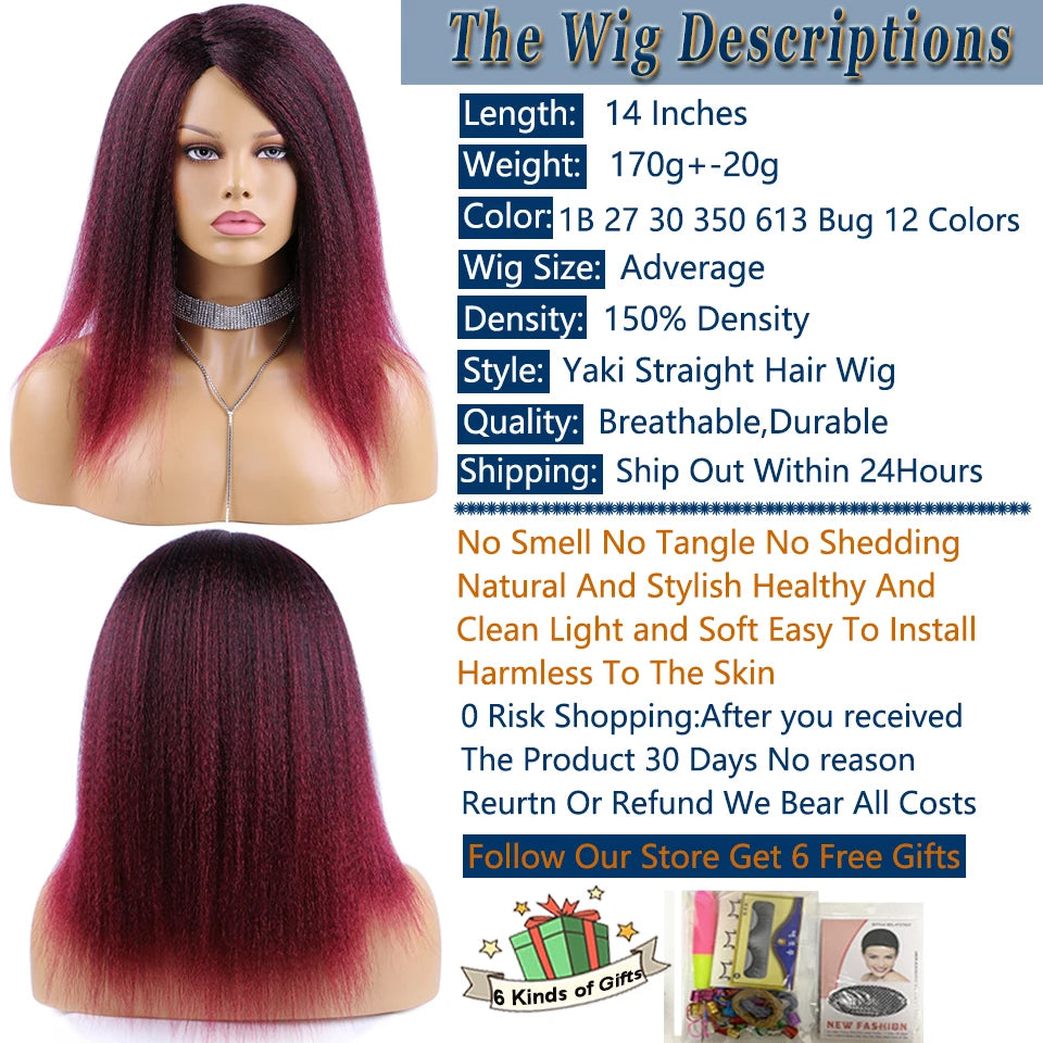 Hair style :Yaki Straight Wigs Kinky Straight Hair Wigs Synthetic Kinky Afro Wigs for Women.
